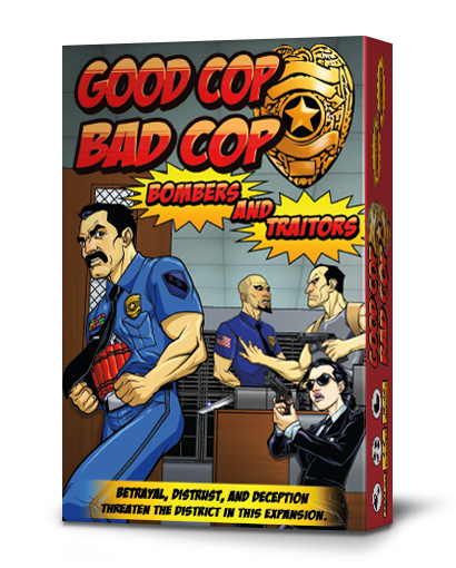 The Bombers and Traitors expansion to Good Cop Bad Cop adds another layer of deduction and new opportunities for deception. You will not only be investigating players to find out who is Honest and who is Crooked, but also to figure out if anyone is a Suicide Bomber or a Traitor. Additional Equipment cards have been added to aid you in your new tasks.